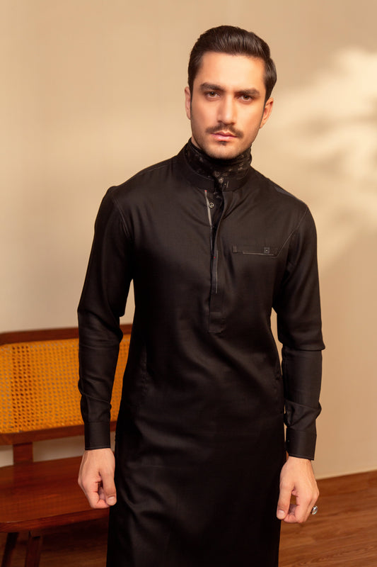 Ghalib Qureshi's signature Kameez Shalwar is a testament to precision and attention to detail. Crafted with utmost care, each ensemble stands as a masterpiece, seamlessly blending tradition with modernity.