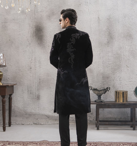 Black Velvet Hand-Embroidered Sherwani