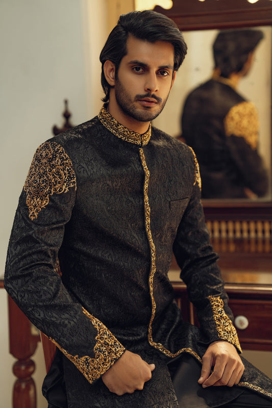 BLACK HAND EMBROIDERED SHERWANI (ORDER VIA BOOK AN APPOINTMENT ONLY)