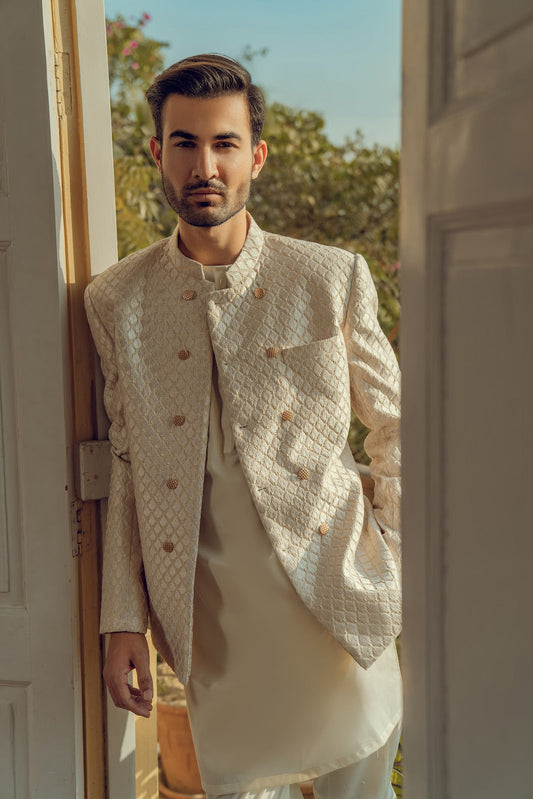 OFF WHITE HAND EMBROIDERED SHERWANI (ORDER VIA BOOK AN APPOINTMENT ONLY)