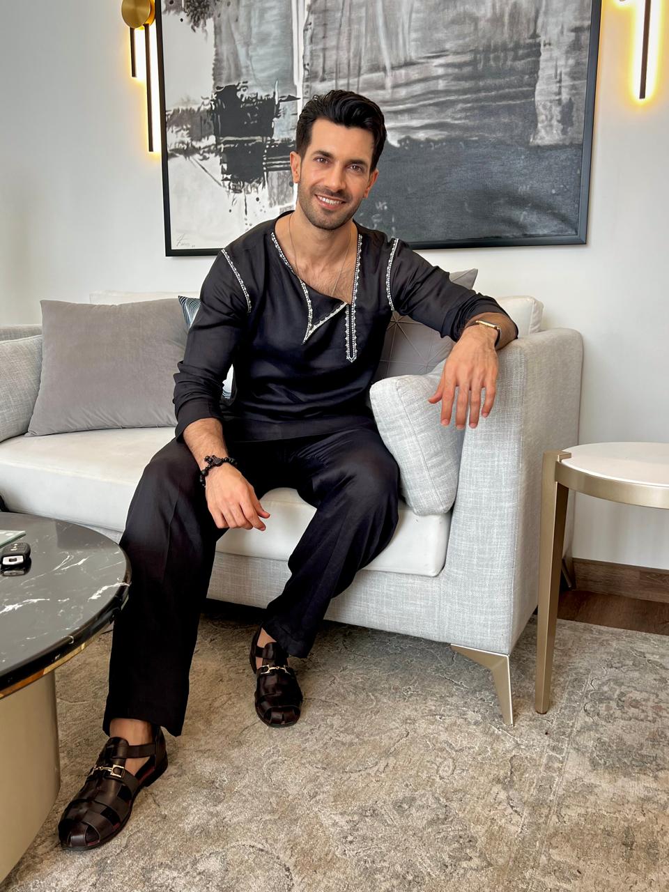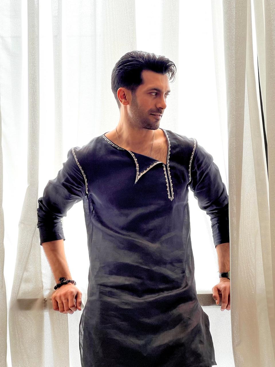 Black embroided kurta with trouser