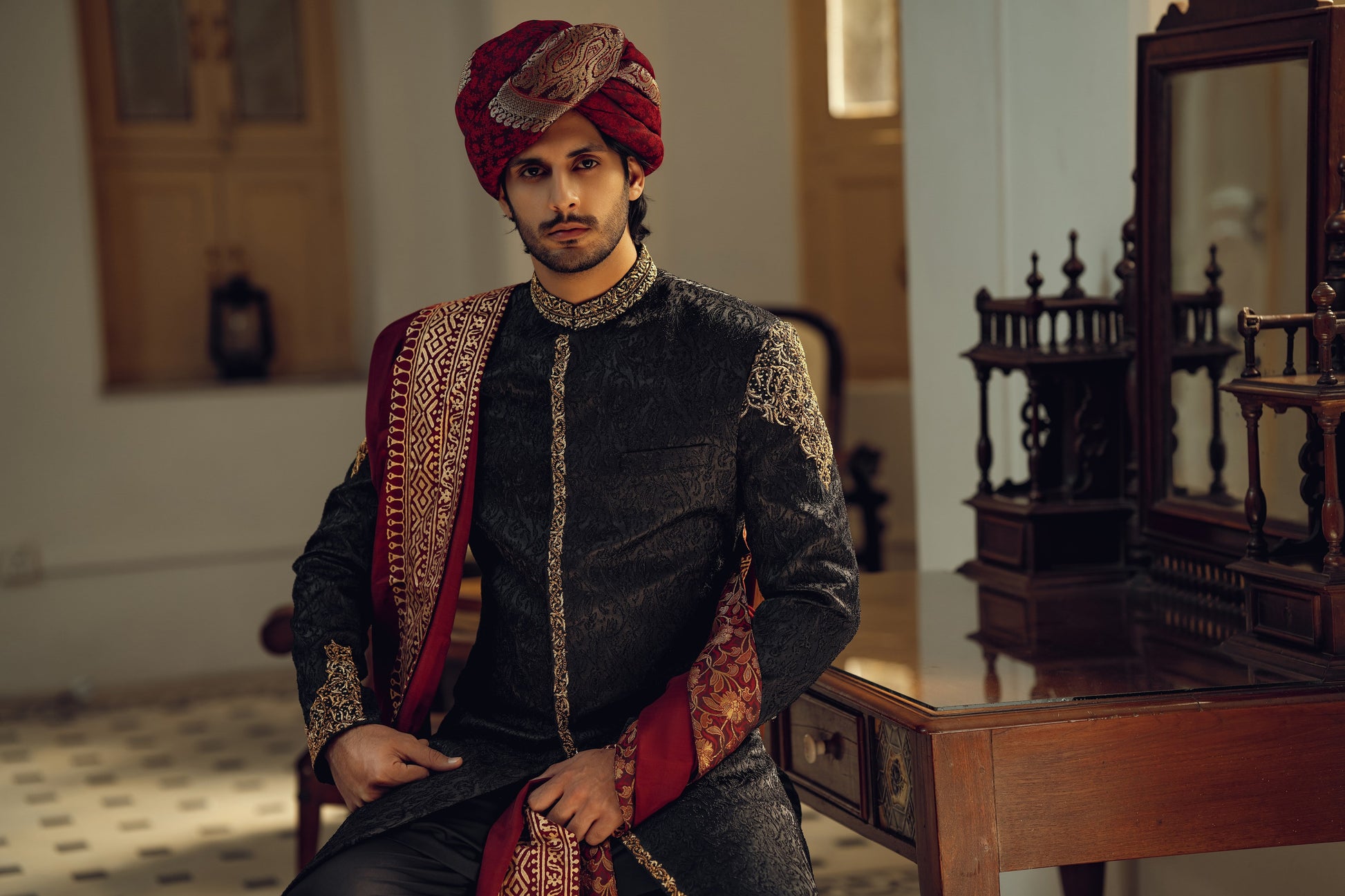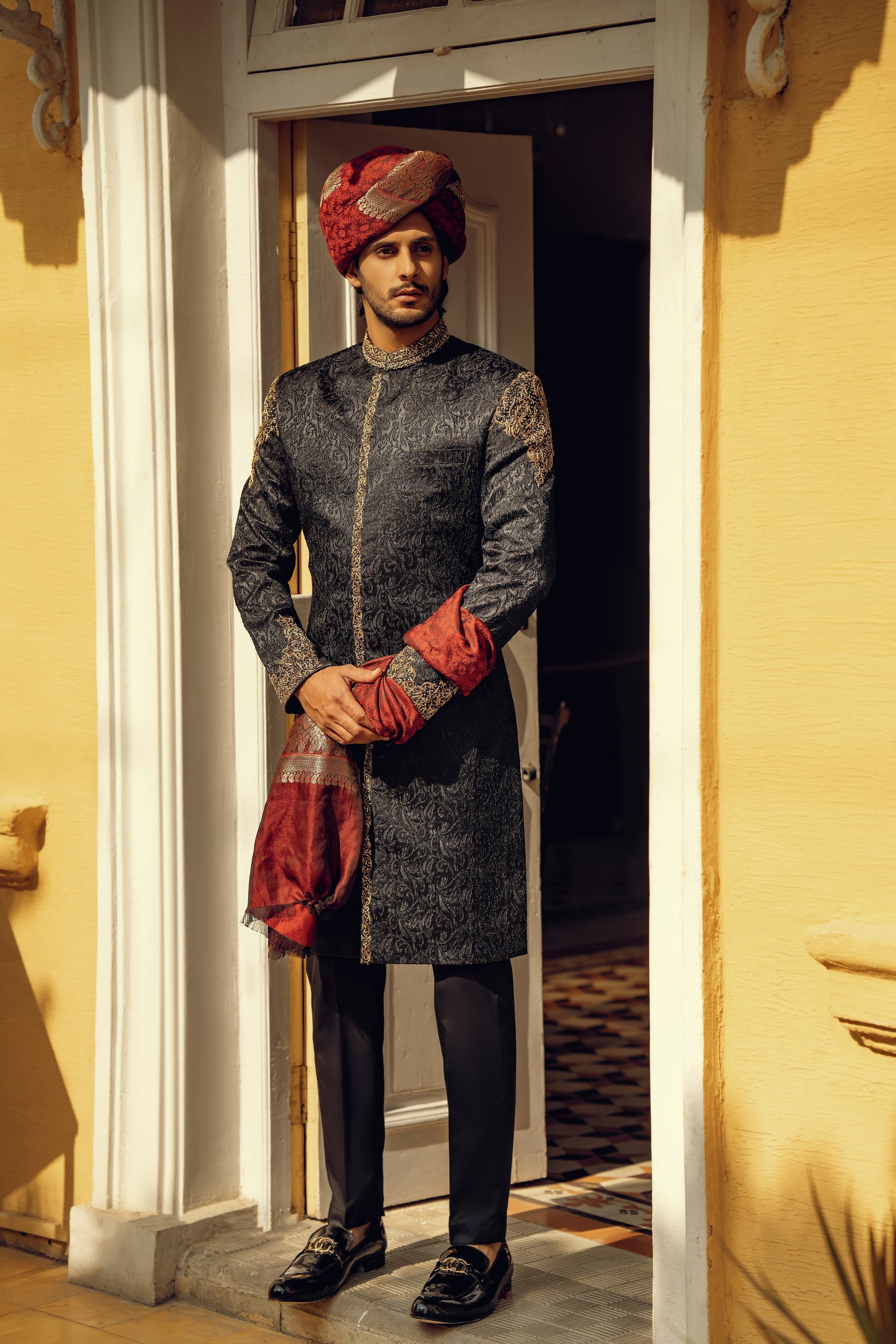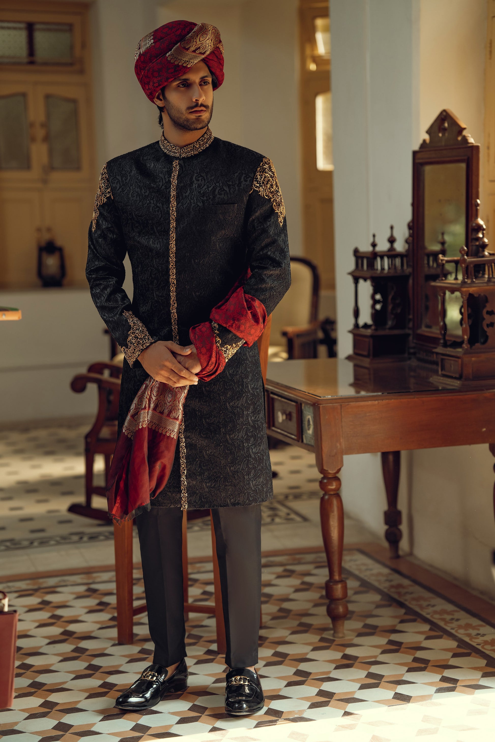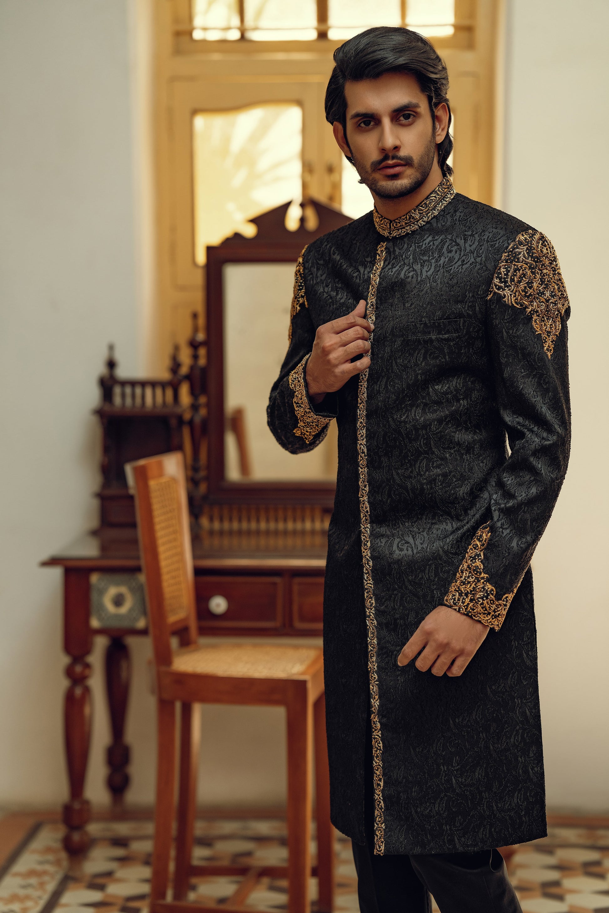 BLACK HAND EMBROIDERED SHERWANI (ORDER VIA BOOK AN APPOINTMENT ONLY)