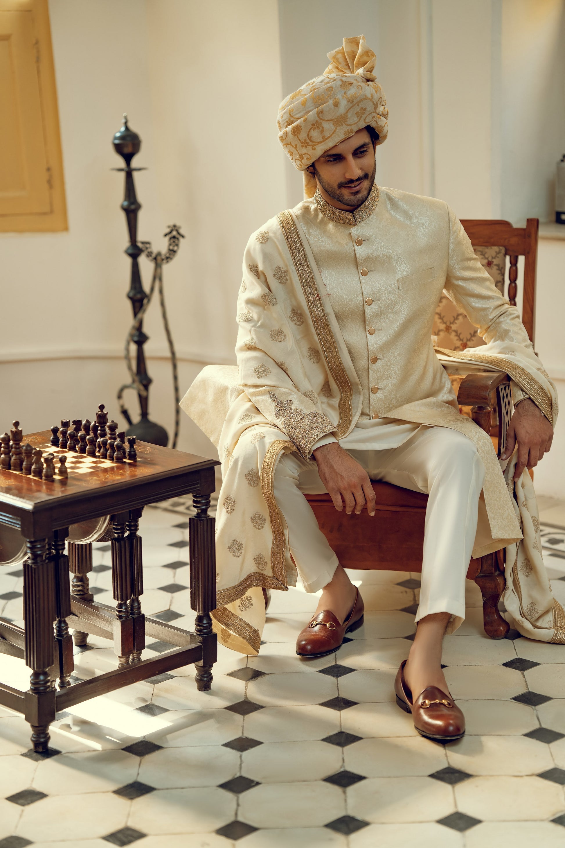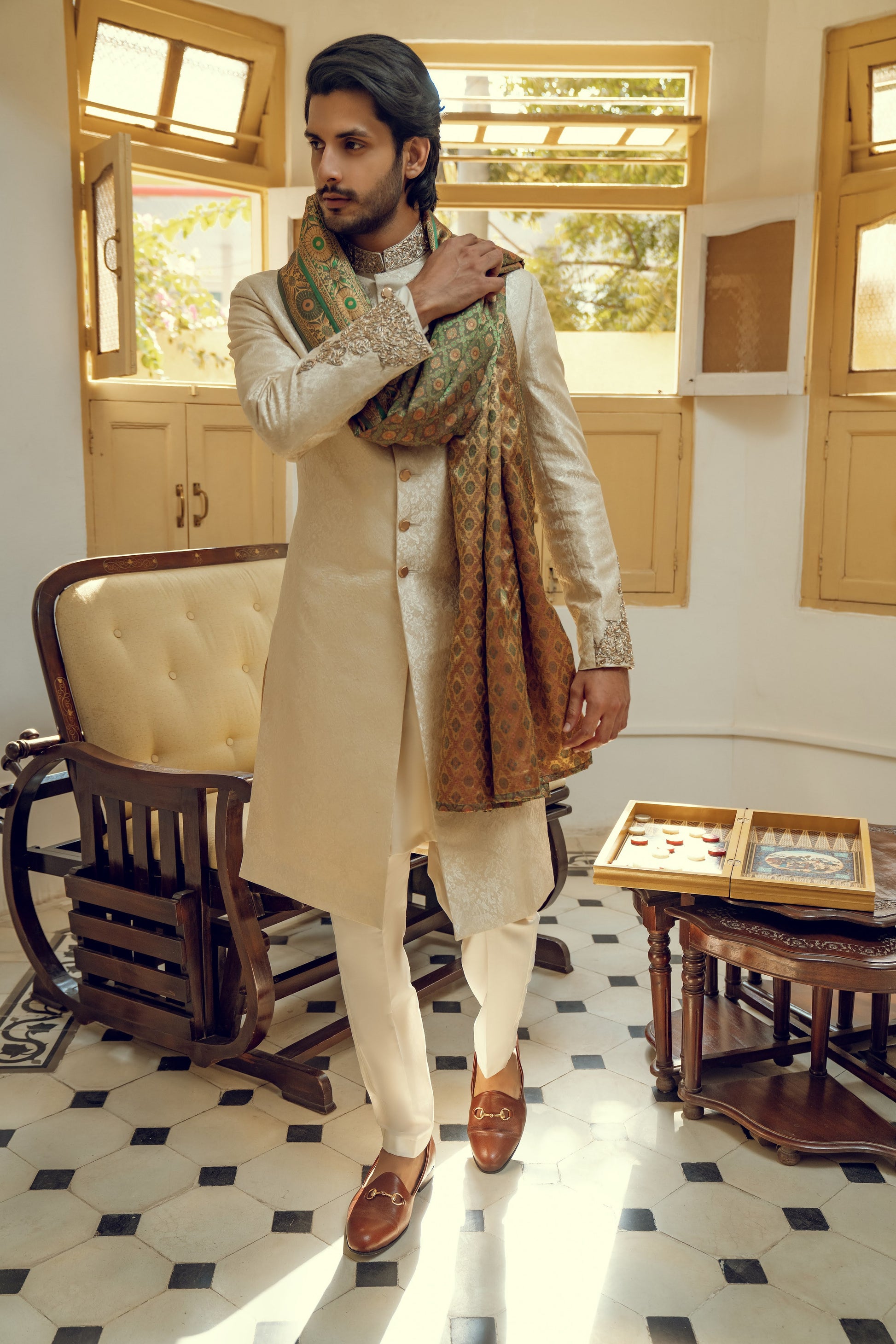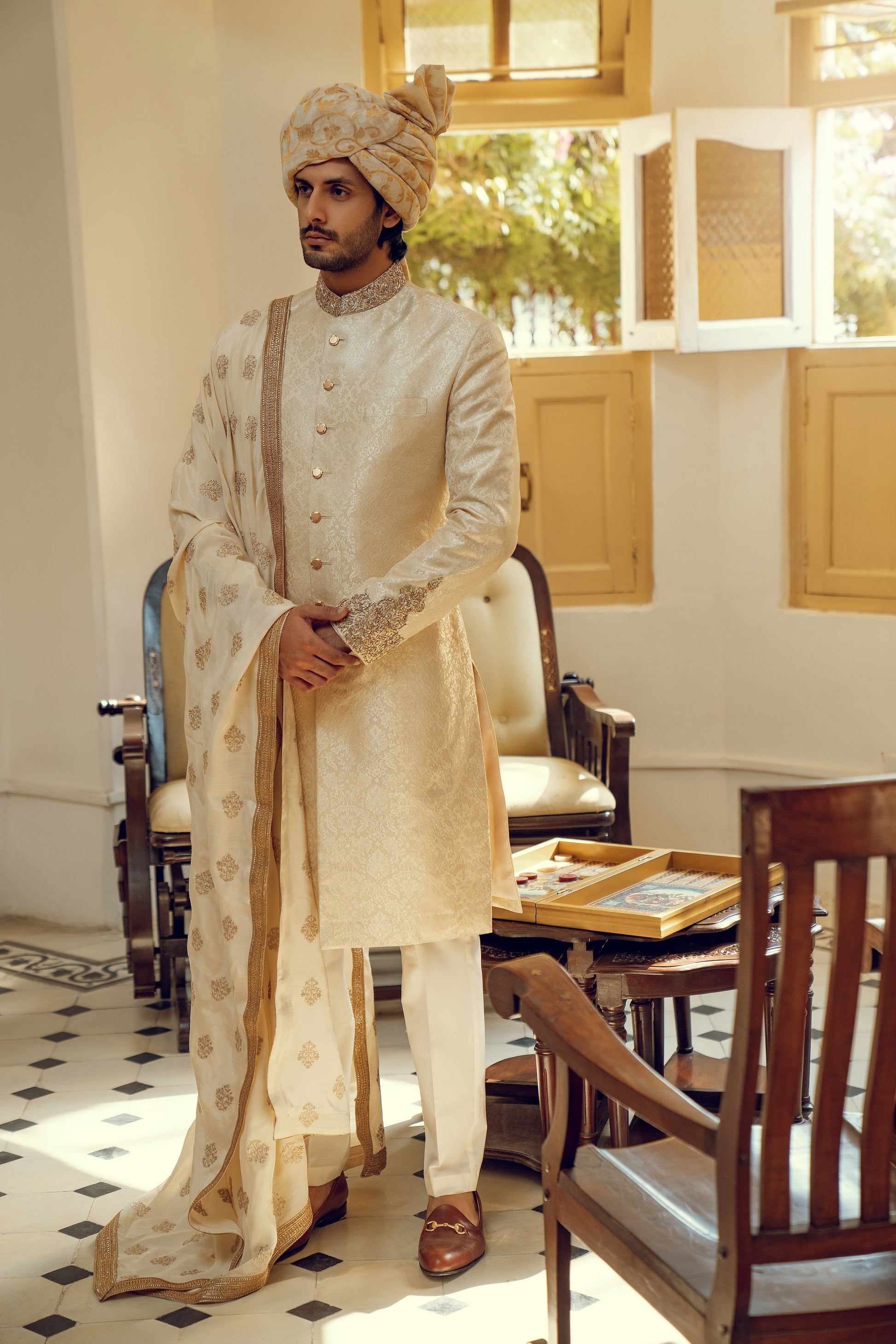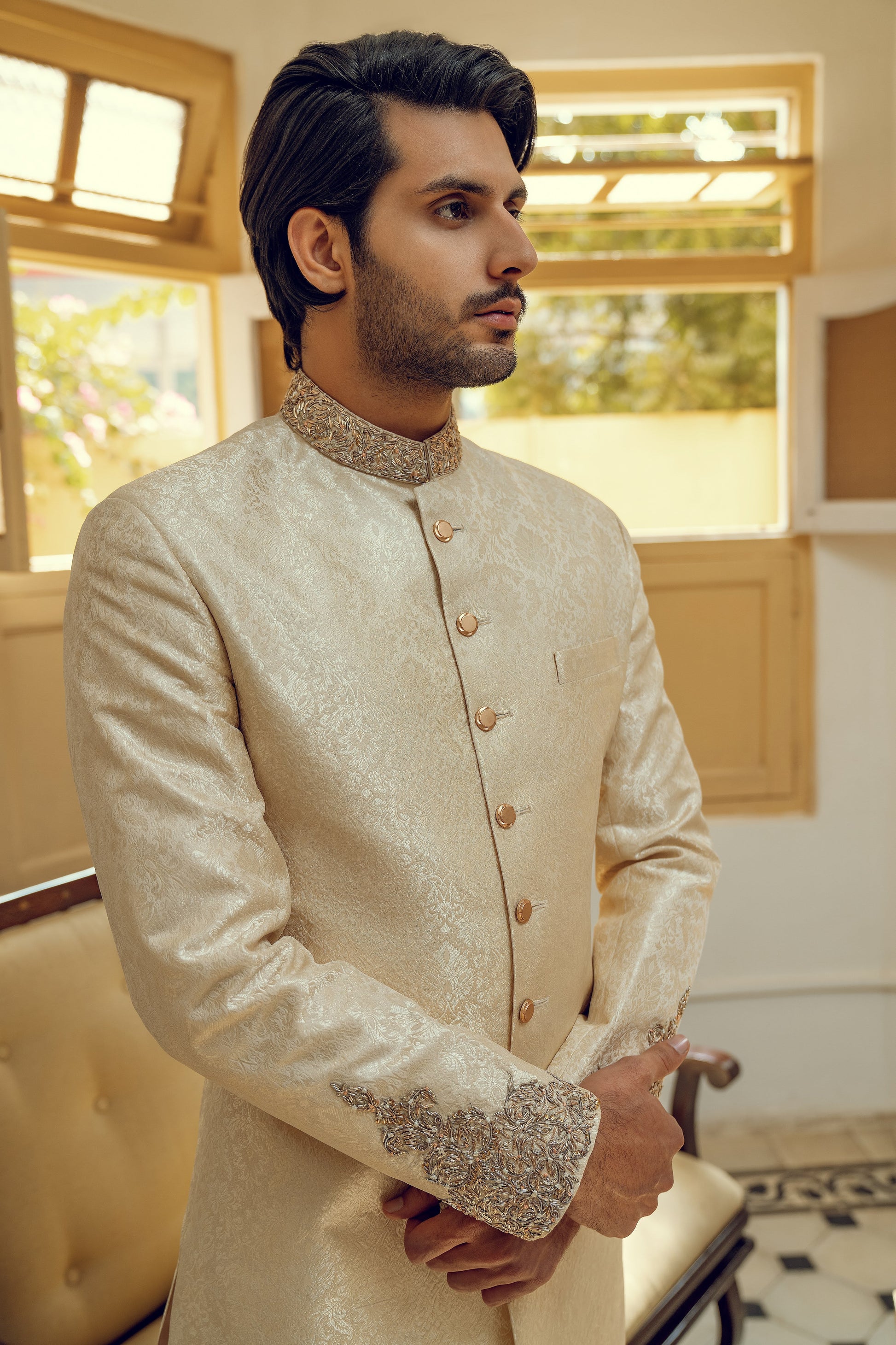 OFF WHITE HAND EMBROIDERED SHERWANI (ORDER VIA BOOK AN APPOINTMENT ONLY)