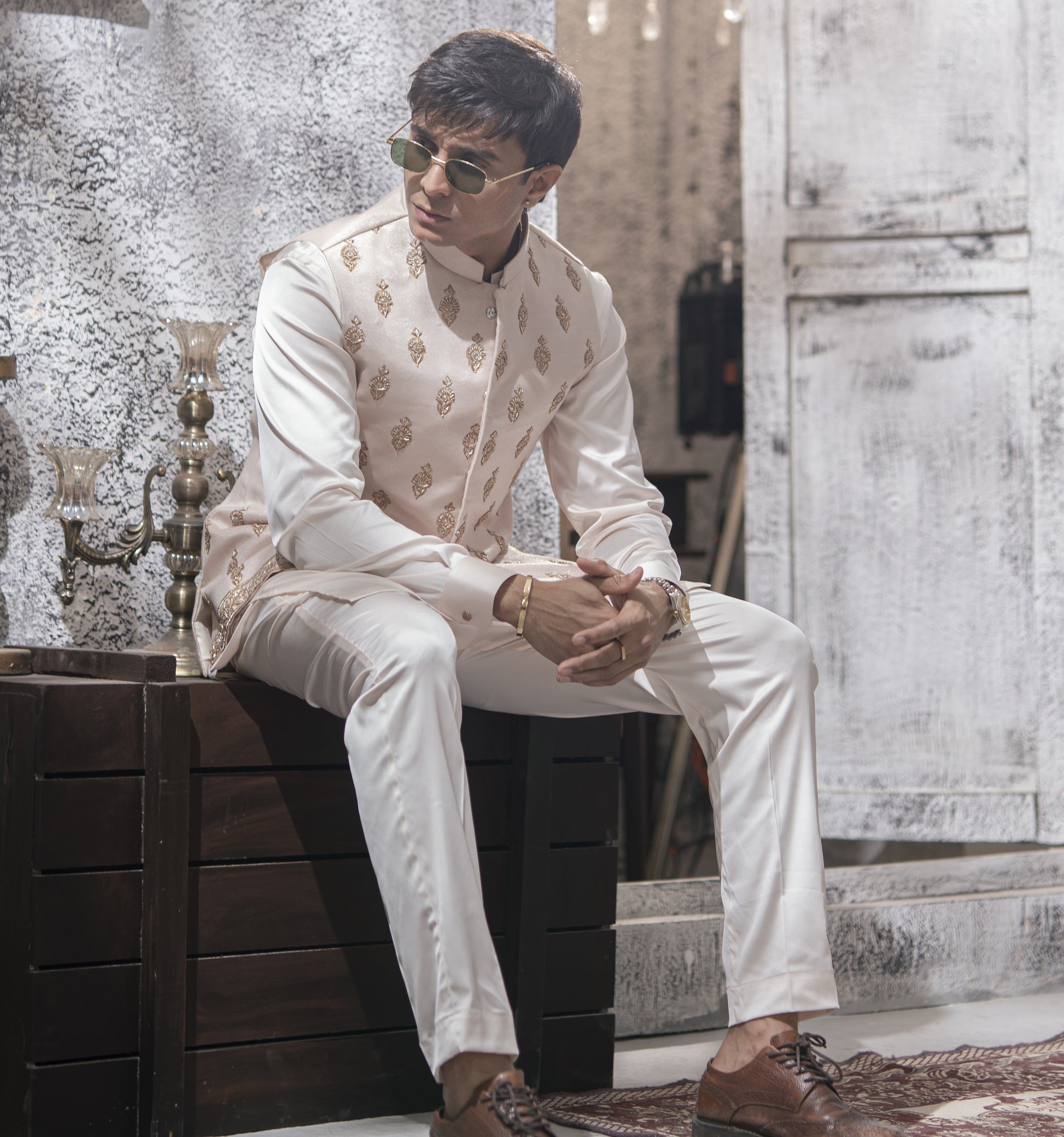 Designed for those who understand that true luxury whispers, not shouts, this ensemble is ideal for festive mornings, intimate celebrations, and elegant wedding affairs.